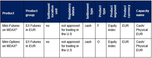 Effective 23 August 2021, Eurex Clearing will offer clearing services for Mini-Futures and -Options on the MDAX® index.