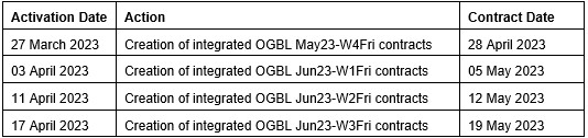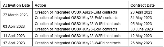 The integration of Weekly and end-of-month (“EoM”) options contracts into the main Product-ID starts on 27 March 2023 and will be completed by 17 April 2023 with the exception of OESX, where the integration period lasts until 8 May 2023.