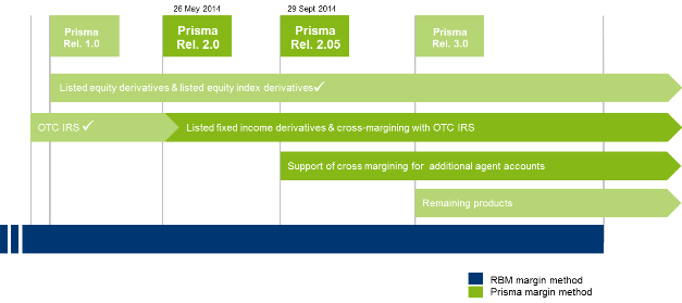 Eurex Clearing Prisma, short for Portfolio Risk Management, is the new method which calculates risk across underlying products and even across multiple markets cleared by Eurex Clearing. The clearing house is moving all its cleared products to Prisma over time, starting in 2013 with all equity and equity index products and, with release 2 in May 2014, moved all fixed income products to this advanced risk method.