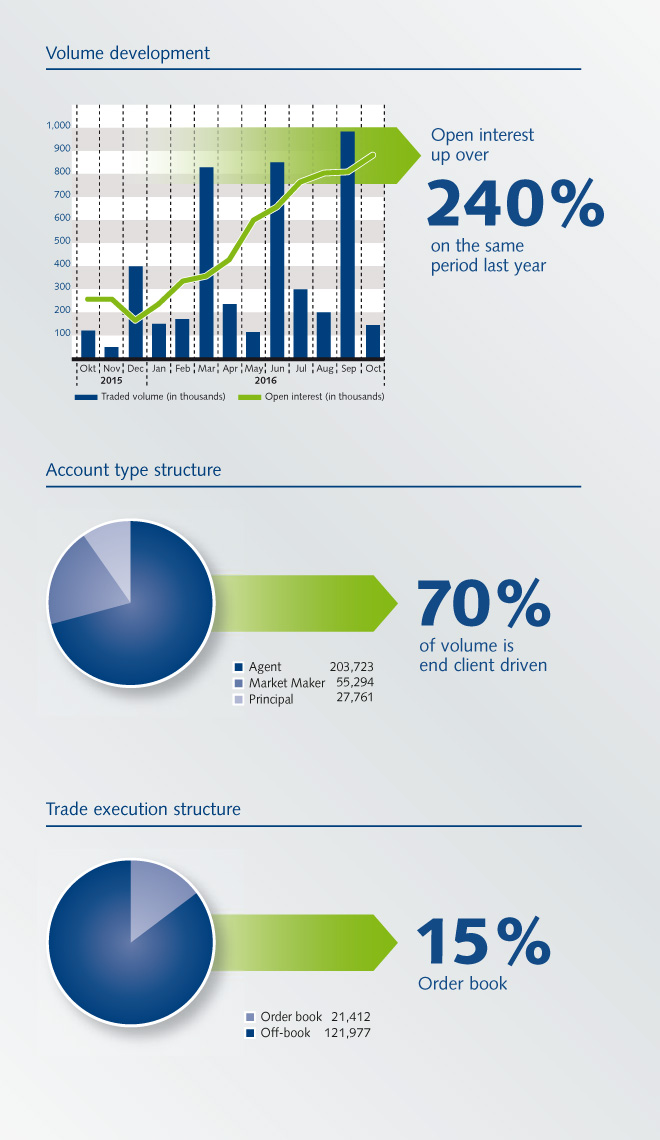 The recent U.S. uncleared swap margin, capital and segregation requirements have generated significant interest in the Eurex MSCI Futures and Options complex. This has manifested itself in both the increase in enquiries made to the exchange from new locations and in the steady climb of open interest in MSCI Futures and Options, that as of Thursday, 17 November 2016, stands at over 920k contracts equating to in excess of USD 22.6 bn of market exposure. To put this in perspective, the OI at the end of November 2015 was 254k contracts, which represents almost a four fold increase this year.