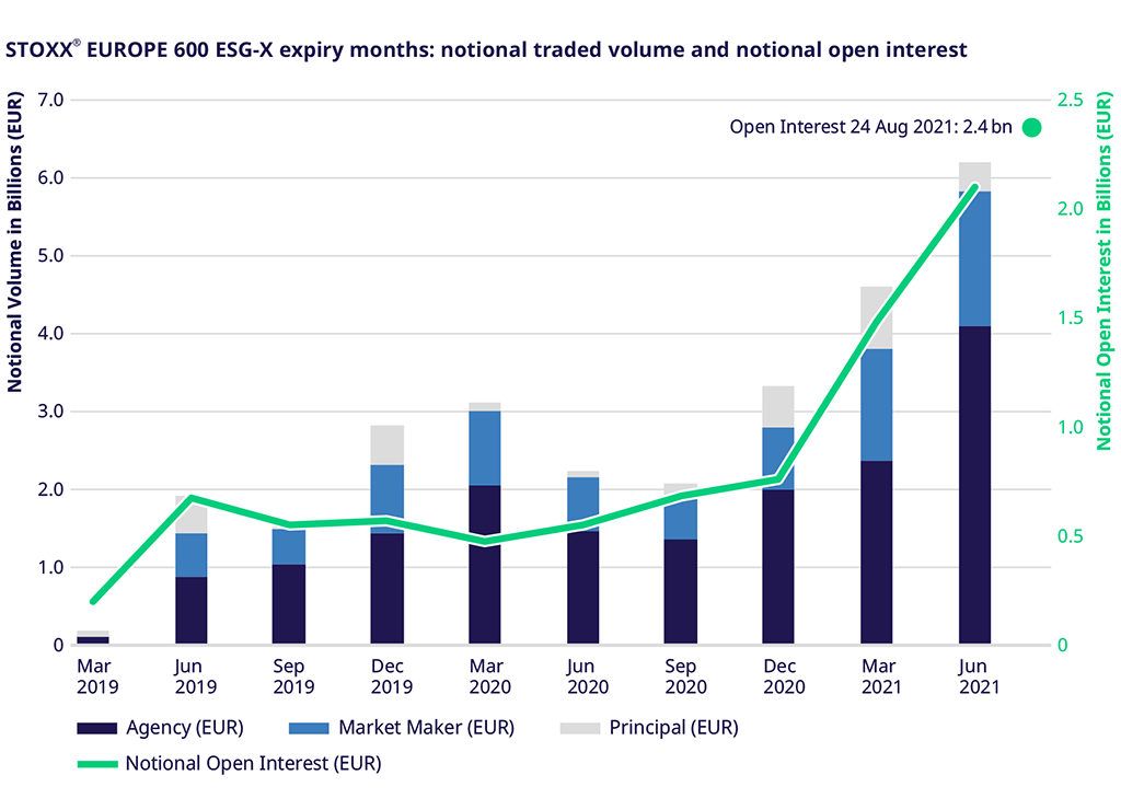 STOXX® Europe 600 ESG-X Index (FSEG) futures, the world's most popular sustainability-focused derivatives, has topped 1 million contracts in 2021, as more traders and investors turn to the products to manage responsible portfolios.