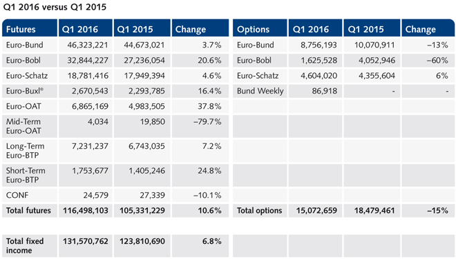 Fixed income derivatives volumes were restrained by ECB manoeuvres, however figures for Eurex Futures remained robust: