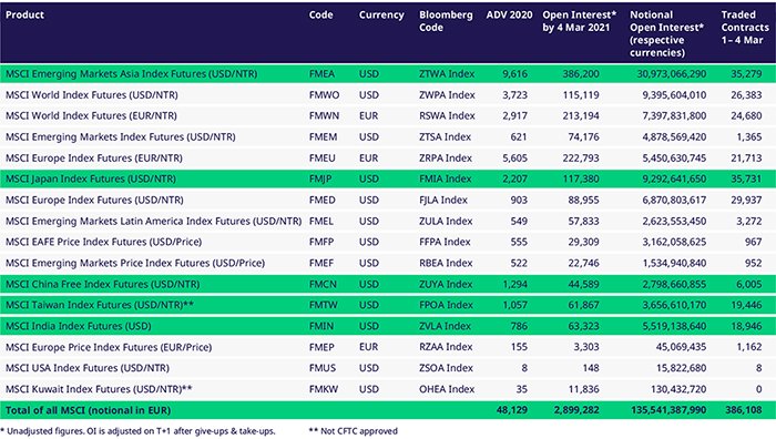 MSCI Futures activity on Eurex this past week (March 1-4, 2021)