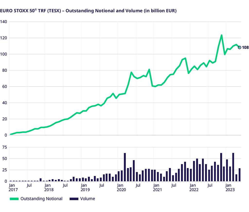 The markets continued their wait-and-see approach in May, with volumes relatively stable at a high level compared to the previous month. The outstanding notional value remained steady to slightly lower in line with the underlying indices, and TRF volumes mirror the markets in terms of activity. New participants continue to enter the market, and the liquidity in the SX5E and FTSE 100 TRF is sufficient to attract buy-side participation. Assumably, interest rates and the inflation cycle keep activity subdued in the equities space, but they are also the most likely catalysts to changes going forward. Stay tuned!