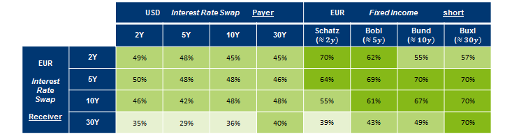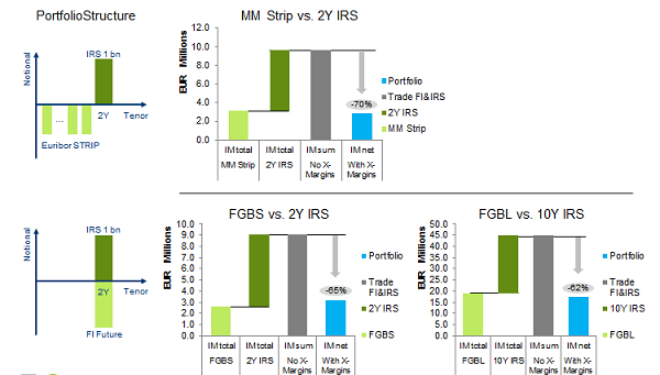 The analysis below of the various cross currency margin savings of various tenors between USD payer OTC IRS and EUR receiver OTC IRS and that of cross product margin savings between various tenor EUR receiver OTC IRS and Eurex Exchange's Euro-Schatz, Bobl, Bund and Buxl® fixed income futures clearly show that cross product cross margin savings far outweigh that of cross currency cross margin savings.