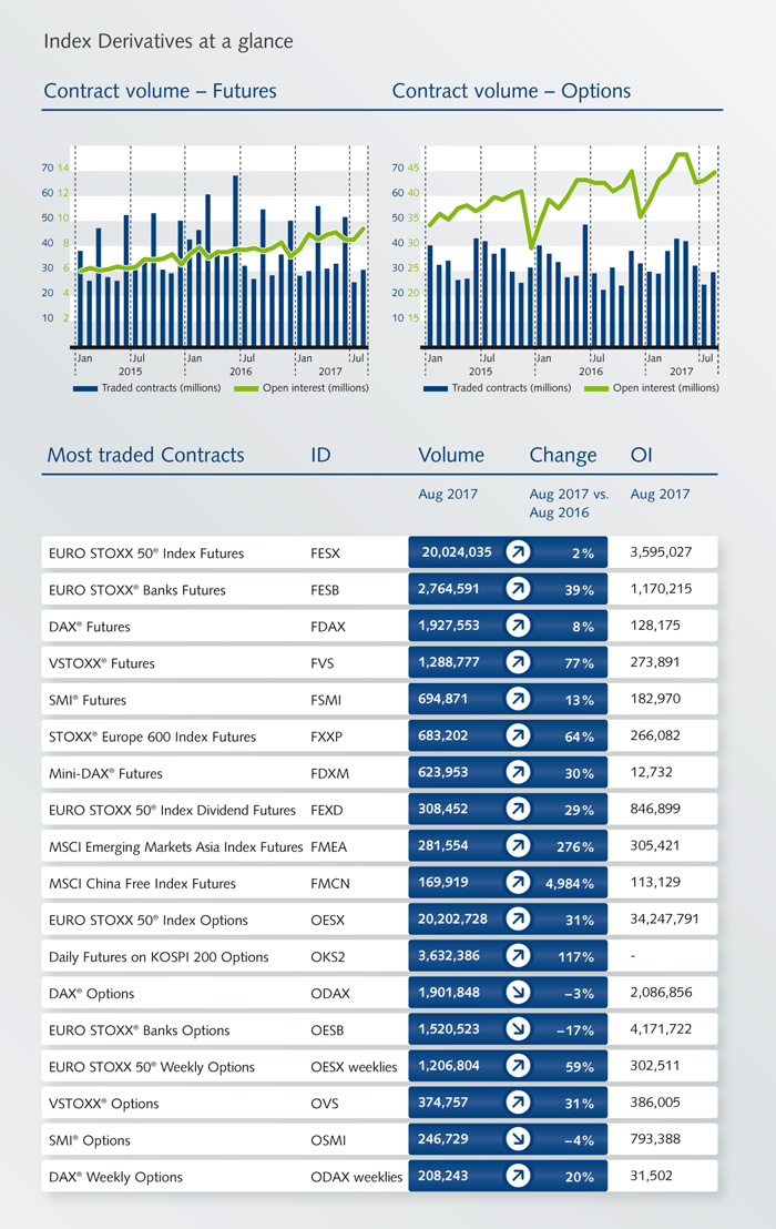 Away from the strong volumes experienced during the month across our major index suite, we also saw healthy increased activity for STOXX® Europe 600 Index Futures, Mini-DAX® Futures, as well as, Dividend Derivatives. We have also recorded early futures roll trading across our MSCI Futures segment, likely driven by members wishing to neutralize risks well ahead of the typhoon season in Asia. On a supportive note for European stability, polls are suggesting that Angela Merkel will retain her position post German elections, though we've all long since become alert to over reliance on polls. Despite now reaching the third round of Brexit talks, the EU and UK appear to have made little progress, though the equity market is absorbing this saga without concerns so far.