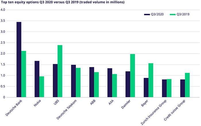Q3 trading boundaries narrowed following the tremendous volatility in Q1 and the subsequent recovery rally in Q2. Consequently, volumes and risk appetite were lower than in previous periods. Uncertainty surrounding dividends and earnings decreased slightly, but there are sectors where uncertainty still holds, especially amid an increase of COVID-19 cases and new restrictions across Europe.