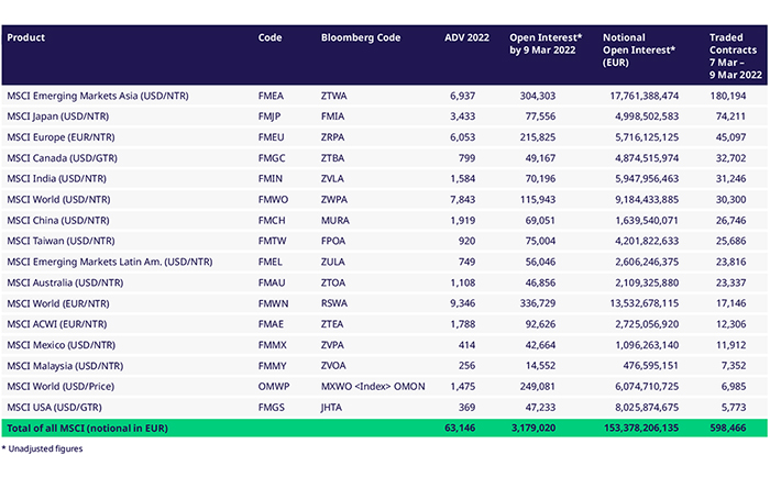 MSCI futures activity on Eurex this week (7 March to 9 March 2022)