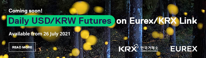 Daily USD/KRW Futures on US Dollar Futures are available from 26 July 2021 via the Eurex/KRX Link. The contract is fully fungible with the corresponding contract listed at KRX. This means that global market participants can continue to trade Korean Won Futures at Eurex during core European and North American trading hours. The contract is available to U.S. market participants.