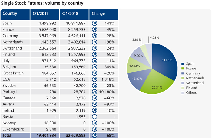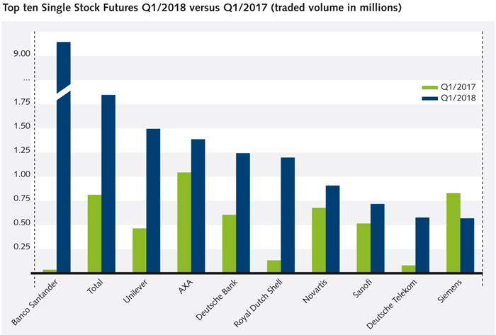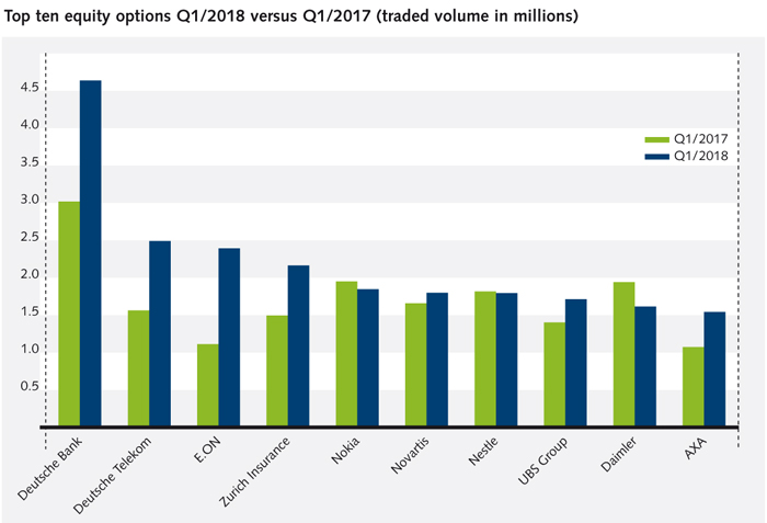 Eurex Exchange offers the broadest range of pan-European single stock options and futures with a product offering of more than 700 equity options and 800 single stock futures from more than 10 countries. Through bundling European equity derivatives exposure at Eurex, investors are able to maximize collateral utilization and benefit from cross margining efficiencies with Eurex Clearing. This update serves you with key figures and the most important developments in our equity derivatives segment during the first quarter of 2018.