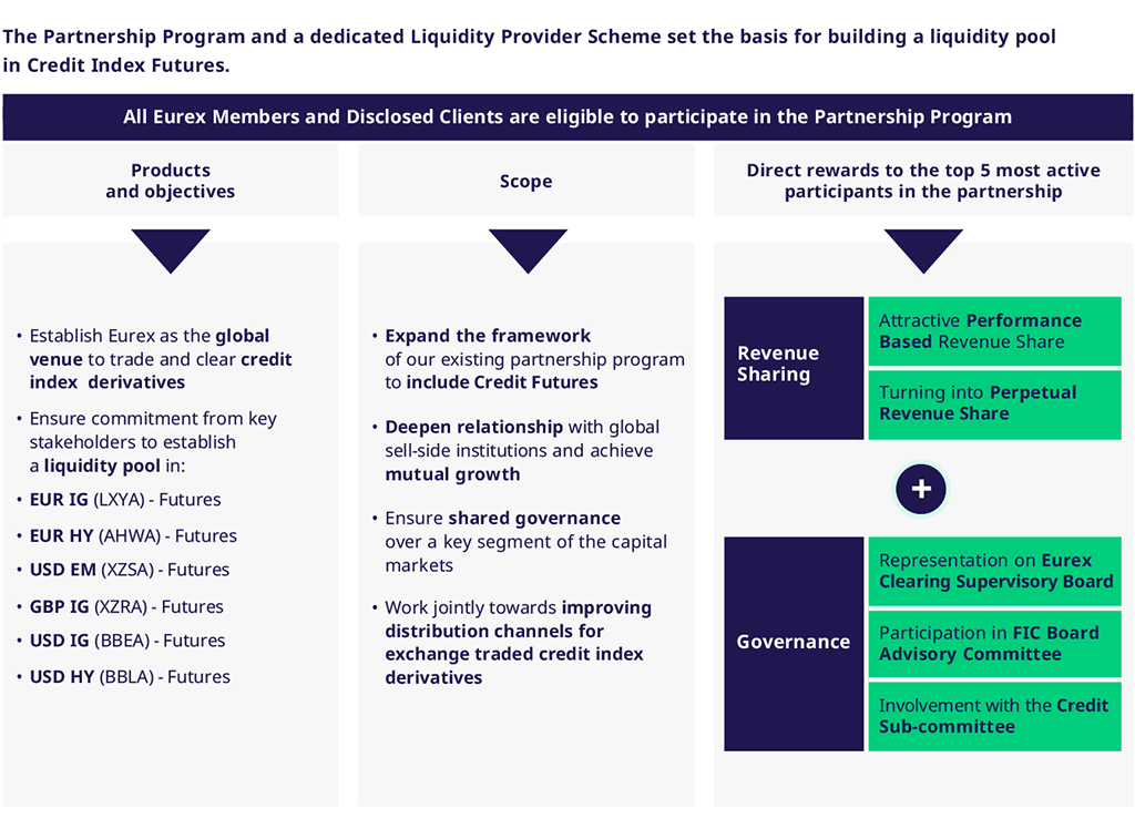 Eurex has expanded its Partnership Program to include credit index derivatives. With this latest step, Eurex strengthens its global credit derivatives suite, enhancing its cross-product efficiencies and position as a market leader in listed fixed income derivatives.