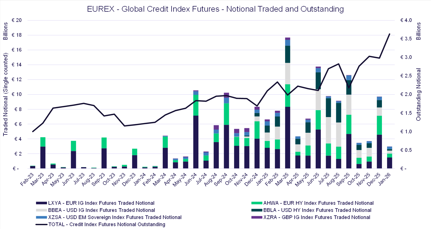 “In 2025, we saw an increase in usage by fast-money buy-side clients, particularly hedge funds. These firms viewed the contract as liquid enough to enact relative value trades. One example of this is spread trades between EUR credit index futures, seeking to exploit the compression or decompression between high-yield and investment-grade credit spreads in the fourth quarter of 2025.”