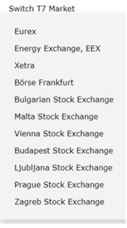 In the upper left corner of each T7 GUI Landing Page you will find the already known selection menu for easy switching to other markets: