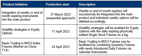 Options contracts entered into before the production start on 27 March 2023 will remain tradable even after the production start until the respective expiration. In such cases, trading will be governed by the respective rules and regulations that had been valid prior to the production start.