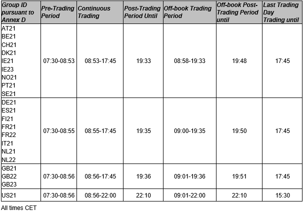 b) The trading hours for Single Stock Dividend Futures will be adjusted and aligned to the trading hours of Single Stock Futures according to the table below: