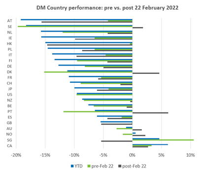 年初至今,除了加拿大、新加坡和挪威之外, STOXX®全球1800股指中的其他所有国家都呈现下跌。