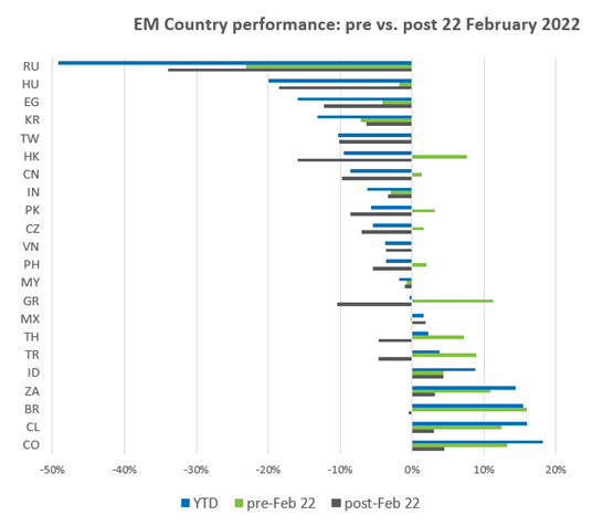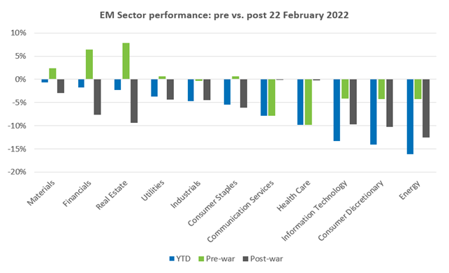 在俄罗斯入侵乌克兰之后,STOXX®新兴市场1500指数的所有类股板块都下跌。