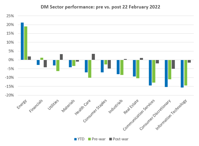 STOXX全球1800指数中的能源、公用事业、医疗保健和房地产行业的股价,在俄罗斯开战后因而受益。