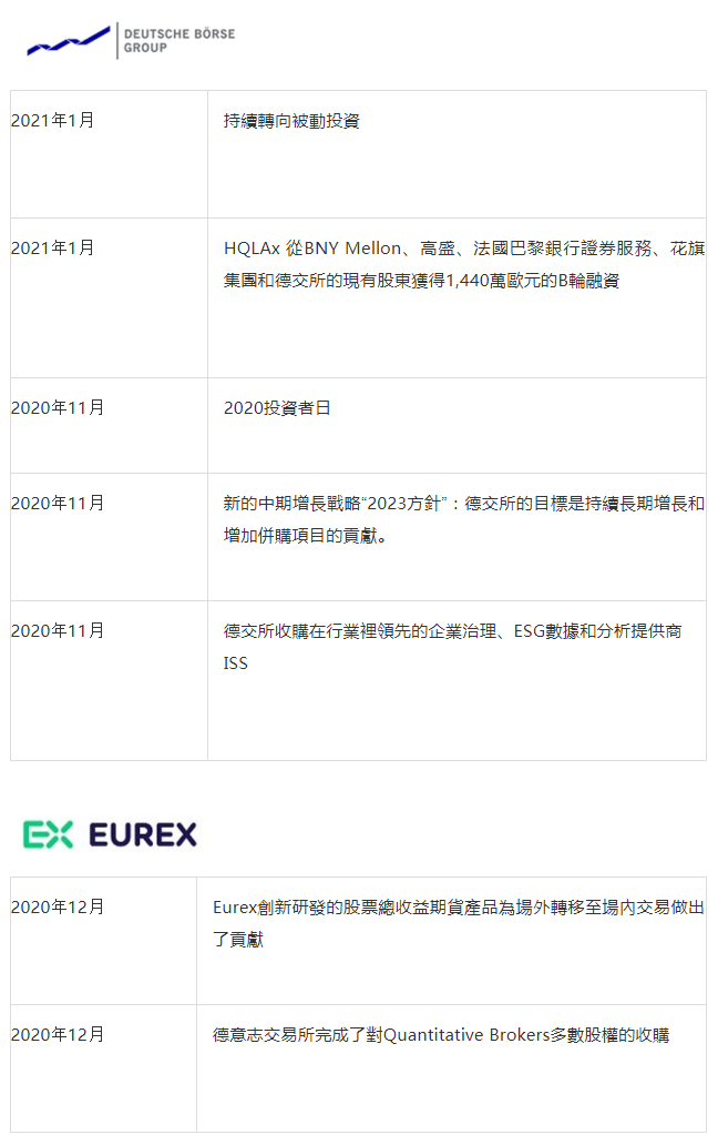 下列所示為德交所實現未來增長策略的相關的工作與重要項目公告。