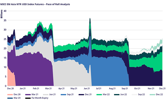 MSCI股指衍生品展期交易趨勢(按到期日):