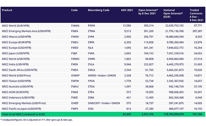 MSCI期貨產品本週交易情況(2021年12月6日- 8日)