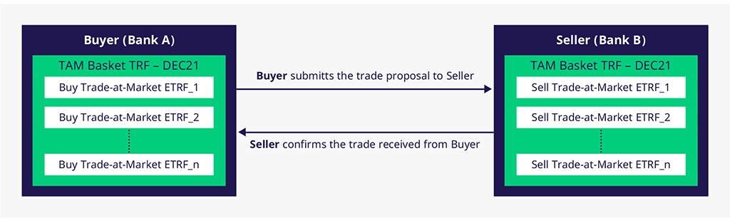 BTRFs are a package of multiple Equity TRFs constructed by traders within certain parameters concerning eligible equity shares. This negotiated and customized package of one or more ETRFs is traded with the same maturity and at the same TRF spread. Basket Trades at Eurex Exchange are incorporated within T7 Release 7.1.