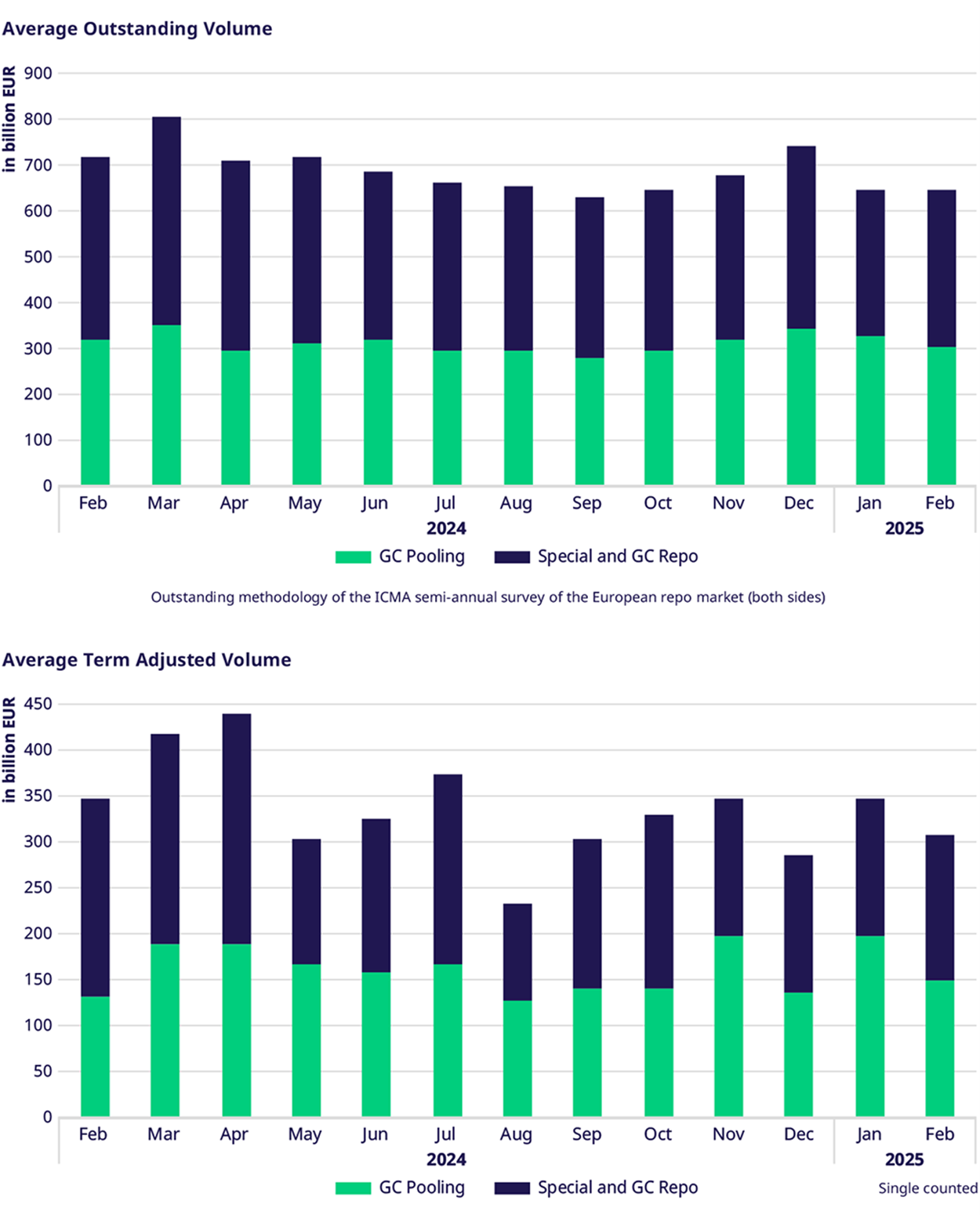 In February, average daily traded volumes remained stable, with a slight decrease of 1% compared to February 2024. This was driven by a 9% increase in GC Pooling and a 15% decrease in GC & Special. Overall outstanding volumes fell by 8%, primarily due to a 15% decline in GC & Special, while GC Pooling maintained stable and consistent outstanding volumes.