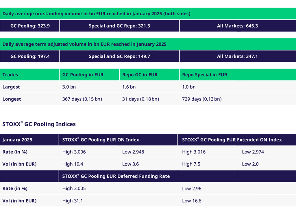 Average daily traded volumes in January (compared to last year) increased slightly by about 2%, with GC Pooling up by 12% and GC & Special down by 13%. Overall outstanding volumes dropped by 7%, influenced by a 16% decrease in GC & Special, while GC Pooling continued to grow modestly by 3.4%.