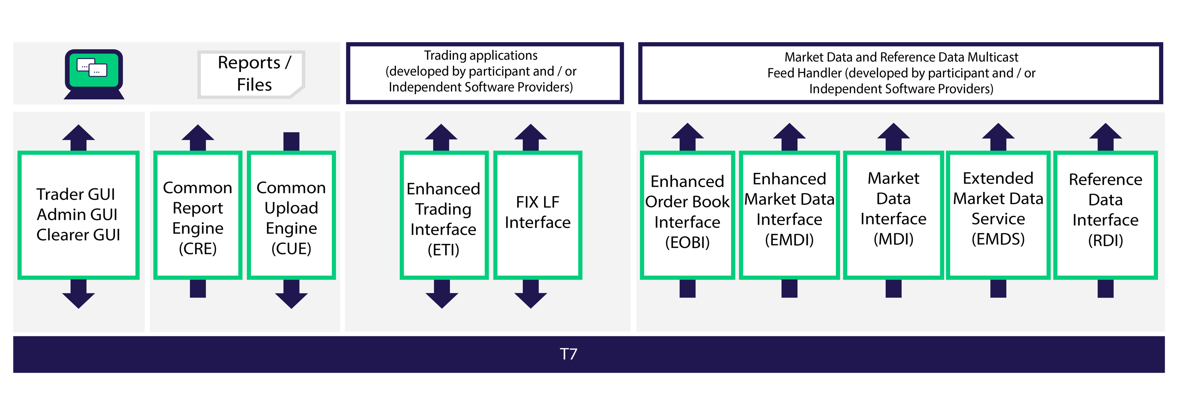 The T7 trading system is used by multiple derivatives and cash markets. For derivatives trading, this includes: